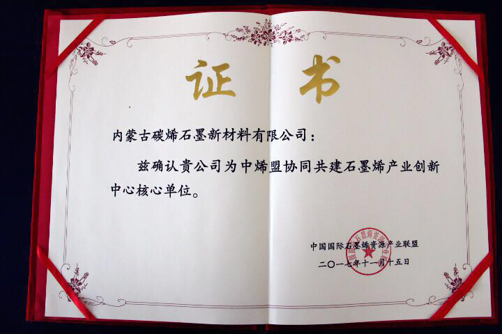 內蒙古碳烯石墨新材料有限公司被授予“中烯盟協同共建石墨烯產業創新中心核心單位”稱號